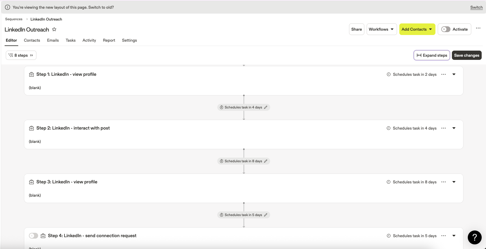While the interface might look different, the way your sequences behave hasn’t changed. Once you explore the new layout, you might find it easier—and faster—to build out the outreach workflows that keep your business moving forward.